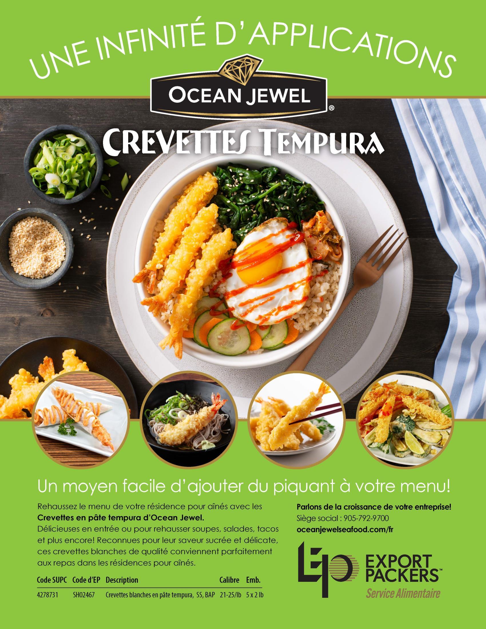 LescrevettestempuraOceanJewelsontun excellentexempledeproduitpolyvalent.On peutlesretrouverdansplusieursplatsde votremenu: