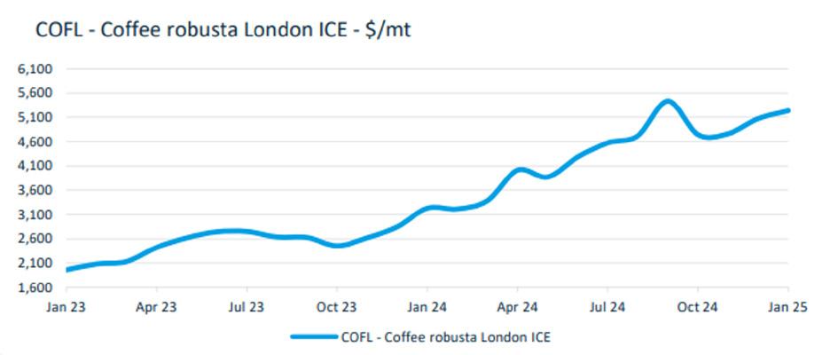 Arabica and Robusta coffee prices have reached all-time highs, driven by thin trading, speculative buying, and a stronger Brazilian Real. Physical trade remains low due to poor availability from key origins following Brazil’s record exports in 2024. Concerns about lower production, drier weather in Brazil, and supply security for 2025 are further fueling market pressures.