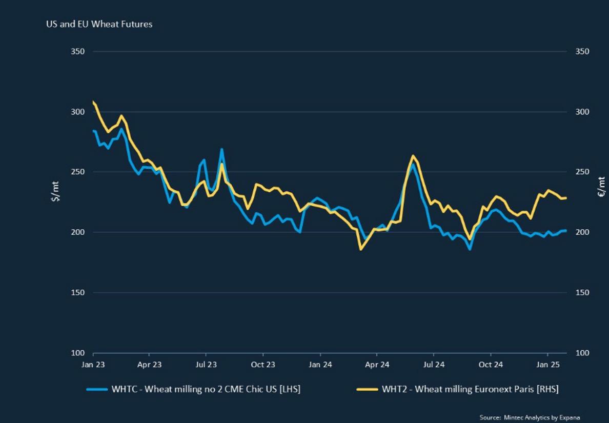 The grain market remains volatile due to cold weather concerns in the Black Sea region and the USA, coupled with renewed trade uncertainties. Russia’s wheat crops are under stress from low temperatures and minimal snow cover, significantly slowing exports, while Ukraine faces ongoing drought conditions. Additionally, fresh trade concerns have emerged following President Trump’s reaffirmation of plans to impose tariffs on Mexican and Canadian imports.