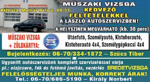 A megjelent hirdetések tartalmáért felelősséget nem vállal.