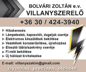 VILLANYSZERELÉSI munkát vállalok kedvező áron, rövid határidővel. Lakások, házak hálózatának korszerűsítése, új építmények kivitelezése. Számlaképes vállalkozás! Bolvári Zoltán Tel.: 06-30/424-3940