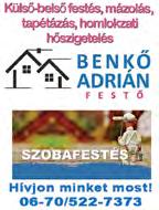 Vállaljuk családi- és vál�ogházak, panellakások felújítását! Kőműves munkákat, burkolást, festést, térburkolatok készítését!! KISEBB JAVÍTÁSOKAT IS! SZÁMLAKÉPESEN TEL.: 06-70/5795654 Kocsis Péter József e.v. TÉRKÖVEZÉS! Térkövezést vállalunk! Meglévő térkő javítását, ha megsülylyedt, feljött javítását is vállaljuk. Tel.: 06-30/248-8208