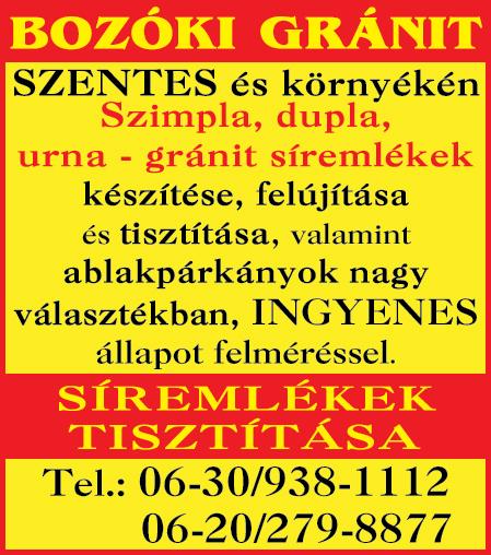 Érdeklődni munkanapokon: 7:00-14:30 óra között. Telefon: 06-30/864-4590