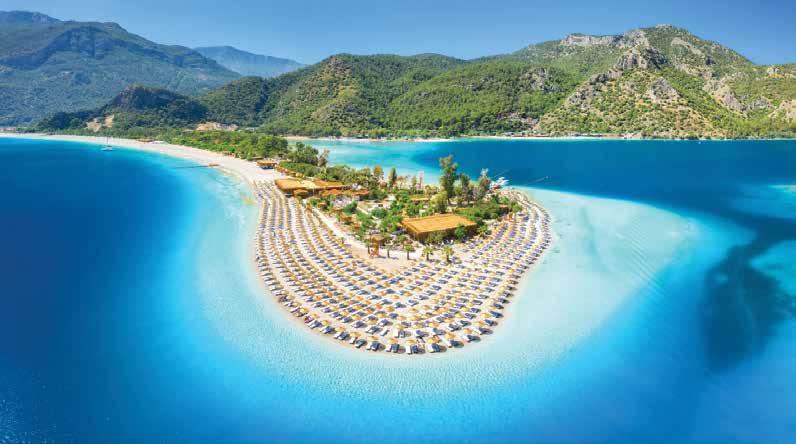 Oludeniz egy lenyűgöző strand, amely az azonos nevű öbölben található, mindössze 15 km-re Fethiye nyüzsgő városától. Ez a festői hely egy hosszú tengerbe nyúló földnyelvvel büszkélkedhet, amely nyugodt menedéket kínál a hullámoktól és a szelektől is. Oludeniz partvonalát világos bézs árnyalatú homokos strandok díszítik, amelyeket a tenger tiszta és smaragd vize egészít ki. Az infrastruktúra a legmagasabb színvonalon van kifejlesztve, így minden szükséglet elérhető: