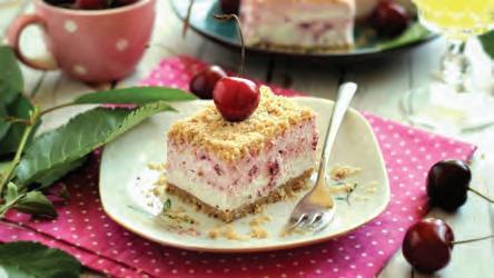 A krémhez: • 4 dl tejszín • 10 dkg porcukor • 2 evőkanál bonbonmeggy aroma • 10 g zselatin • 4 evőkanál víz • 25 dkg magozott meggy • 3 evőkanál cukor