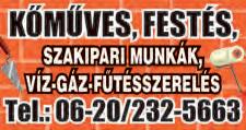 Kőműves, burkoló, tetőfedő, bádogos, festő, víz-gázszerelés, duguláselhárítás.