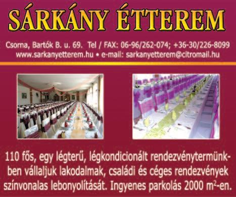 Szerkesztőség: 9300 Csorna, Kismar toni u 2/a Tel: +36 309370 651