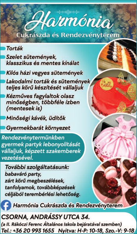 kiadó: INFOREKLÁM Kft 9300 Csorna, Kismar toni u 2/a; Telefon: +36 30 9370 651 Felelős kiadó, szerkesztő: Tárk ányi Mária ügyvezető sokszorosítás: Comorn Lapmanager, Kiadó és Kereskedelmi Kft. Terjesztés: Hírlap Post 2020 Kft szerkesztőség: 9300 Csorna, Kismar toni u. 2/a Tel: +36 309370 651, e -mail: csorna-kapuvar@szuperinfo.hu