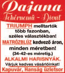 A Szuperinfó Csorna-Kapuvár lap hirdetési hetilapként fizetett hirdetéseket tar talmaz, melyek valódiságát szerkesztőségünk nem vizsgálja, a megjelent hirdetések tartalmáér t felelősséget nem vállalunk. Jogszabályokba ütköző, etikailag kifogásolható hirdetések közlésétől szerkesztőségünk elzárkózik