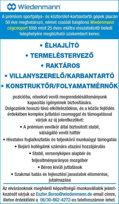 A Németh Szerelvénygyártó és Kereskedő Kft felvételt hirdet CNC gépkezelő munkakörbe Hölgyek jelent-kezését is várjuk Jelentkezni az info@nemethszerelveny hu e-mail címen, vagy a 06 30 237 3289-es telefonszámon lehet
