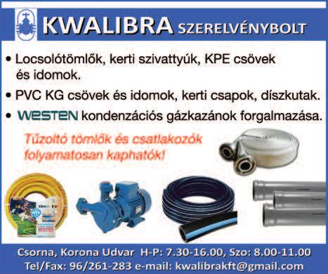 Lapzár ta: keretes hirdetések: kedd 12.00 óra, apróhirdetések: szerda 12.00 óra Szerkesztőség, hirdetésfelvétel: 9300 Csorna, Arany J u 5 Tel /Fax: 96/260-176