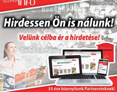 • Terjesztés: terjesztes@szuperinfo.hu • Nyomtatás: Mediaworks Hungary Zrt. Székhely: 1225 Bp., Campona u. 1. Harbor Park, DC 10 ép. • Felelős vezető: Horváth Gábor nyomdaigazgató