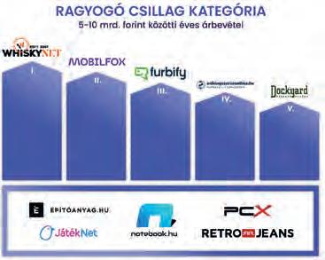 A 47 legvilágpiacképesebb cég közül 15 részesült személyes elismerésben. A legnagyobb, 10 milliárd forint feletti árbevétellel rendelkező vállalatok közül a Pepita Group Zrt. (pepita. hu) vehette át az első díjat, a BioTechUSA Kft. (shop.biotechusa.hu) lett a második, az iPon Computer Kft. (ipon.hu) a harmadik, a Vöröskő Kft. (euronics.hu) pedig a negyedik, míg a Premium Sport Kft. (heavytools.hu) az ötödik.