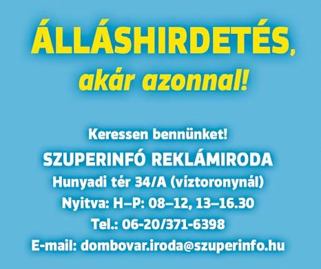Hirdetése megjelenik az interneten is a http://dombovar.szuperinfo.hu és kérésre a www.infodombovar.hu és www.infotamasi.hu oldalakon. A legfrissebb álláshirdetésekről már egy nappal a nyomtatott megjelenés előtt értesülhet, ha lájkolja a Dombóvári Szuperinfó oldalát a Facebook-on!
