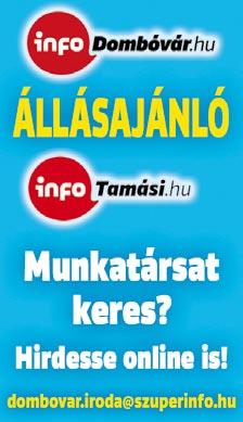 2025. március 13. Apróhirdetése megjelenik az interneten is a http://dombovar.szuperinfo.hu és kérésre a www.infodombovar.hu és a www.infotamasi.hu oldalakon. A legfrissebb hirdetésekről már egy nappal a nyomtatott megjelenés előtt értesülhet, ha lájkolja a Dombóvári Szuperinfó oldalát a Facebook-on!