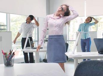 A munkahelyen is megtalálhatod a módját a test átmozgatására, amivel nemcsak az izmokat és ízületeket frissítheted fel, de az elmét is. Ha ülő munkát végzel, célszerű minden órában felállni, és néhány percet sétálni. Emellett a törzs, a vállak, a nyak és a csípő területére kiterjedő mozgásokat végezni, ami lehet: vállkörzés, guggolás, törzshajlítás, lábkörzés.. Ha teheted, ne dolgozz mindig egy helyben ülve, azokat a feladatokat, amelyek nem igényelnek nagy fokú koncentrációt, akár sétálás közben is elvégezheted. De az is sokat számít, ha a napi 8 óra egy részében állva maradsz. Hétvégén is aktívan