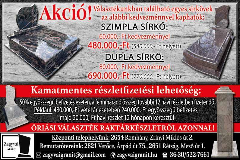 Rendelje meg MOST sírkövét idei árakkal a jövő év tavaszára! AKCIÓS sírköveink széles választékban a kirakatból választhatóak. Biztosítson méltó emléket szerettei számára!