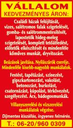 Víz-GázKözpontifűtés szerelés Csatornabekötés földmunkával tóth sándor: 06 20 824 7040 1319776 1319777 Kertépítés, kertgondozás Stargarden Kft. Tel.: 06-30/790-5704 Email: stargardenkft@gmail.com STARGARDEN KFT. Tel.: 06-30/790-5704 • Email: stargardenkft@gmail.com TAKARÍTÁSA ÉPÜLETEK IRODÁK CSALÁDI HÁZAK LAKÁSOK