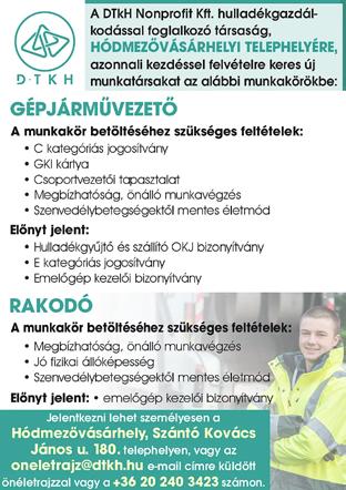 Mártély határában kb. 8 m³ építési törmelék ingyen elvihető. Tel.: 0670 9495-283. Kimaradt cement (nagyobb mennyiség) eladó, 7000 Ft/100 kg. Tel.: 0670 787-3025. Tanyasitojás-vásár. Tel.: 0630 219-4319. Körbálás kukoricaszár és búzaszalma eladó. Telefon: 0630 540-1063.