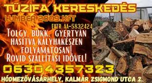 Tűzifa eladó! Tölgy, kőris, szilva 35 000 Ft/m³, nyárfa 25 000 Ft/m³ kiszállítva!