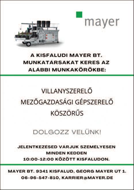 kiadó: INFOREKLÁM Kft 9300 Csorna, Kismar toni u 2/a; Telefon: +36 30 9370 651 Felelős kiadó, szerkesztő: Tárk ányi Mária ügyvezető Sokszorosítás: Comorn Lapmanager, Kiadó és Kereskedelmi Kft. Terjesztés: Hírlap Post 2020 Kft