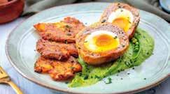 6. A skót tojást borsópürével, sült krumplival vagy akár csak majonézzel tálalva is fogyaszthatjuk. Tálalásnál érdemes félbevágni, hogy látszódjon a belül még lágy és folyós tojássárgája.