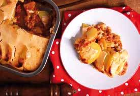 4. A rakott krumpli összeĂĄllĂtĂĄsĂĄhoz egy kb. 23x14 centis jĂ©nai edĂ©nyt kivajazunk. A tĂĄl aljĂĄra egy rĂ©teg fĆtt krumplit teszĂŒnk, majd megsĂłzzuk. Erre kanalazzuk a hĂșsos ragut Ă©s megszĂłrjuk reszelt sajttal. A tetejĂ©t kirakjuk mĂ©g egy rĂ©teg krumplival, megsĂłzzuk, Ă©s befedjĂŒk a tejföllel, amit elĆzĆleg kevĂ©s olajjal, pirospaprikĂĄval, sĂłval Ă©s borssal összekevertĂŒnk. 5. VĂ©gĂŒl a rakott krumplit 190 fokra elĆmelegĂtett sĂŒtĆben aranybarnĂĄra sĂŒtjĂŒk. FedĂ©sre nincs szĂŒksĂ©g.