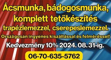 SOS tetőjavítás, beázás elhárítás! Teljes körű tetőfelújítás cseréppel és cserepes-lemezzel, ács- és bádogos munkák. Anyagot biztosítok. Megbízható csapat, hívjanak bizalommal! Július végéig 25% anyagkedvezmény. +36-30/461-2689