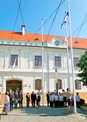 Zászlófelvonás a városháza előtt