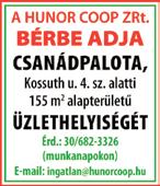 Hunor coop zrt bérbeadja Csanádpalota Kossuth u. 4. 155 m2 alapterületű üzlethelyiségét érd 0630/682-3326 ingatlan@hunorcoop.hu