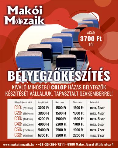 Makó, Szőlő u. 5. (a Szép u. végén.) Nyitva: H–P: 7–16-ig; Sz:7–12-ig Telefon: 06-30/218-3909