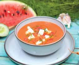 4. Az elkészült levest akár le is szűrhetjük, vagy hagyhatjuk ebben az állapotában is. Hűtőbe rakjuk 4-5 órára, majd apró paradicsom- és uborkakockákkal, valamint feta sajttal és kaporral megszórva tálaljuk.