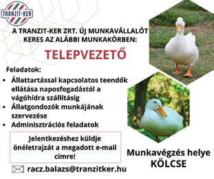 Önéletrajzokat nettó bérigény megjelölésével a munkaugy@triagro.hu email címre várjuk, illetve érdeklődni lehet a 06-20-938-0716 telefonszámon.