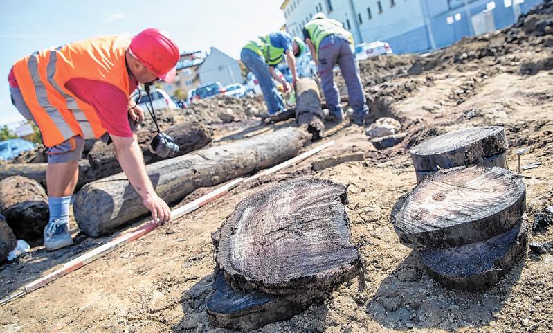 Megtalálták az egerszegi vár északnyugati bástyájának maradványait a régészek, és ki is emelték a palánkfal cölöpeit.