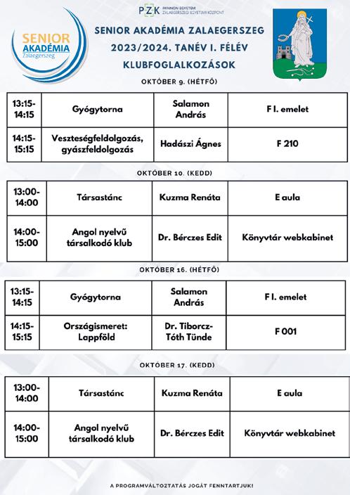 Dr. Kocsis Gyula, az „Életet az éveknek” Országos Szövetség Zala Megyei Szervezetének elnöke rámutatott, a programok október 26-án érnek véget, addig főzőversenyek, ügyességi vetélkedők, sportprogramok, Senior Akadémia, kiállítások valamint különböző kulturális programok is várják az időseket. Az elnök kifejtette, Zalaegerszeg prog-