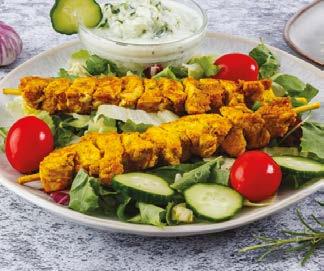 4.A csirkenyársat salátalevélen, a tzatzikivel és párolt rizzsel tálaljuk.