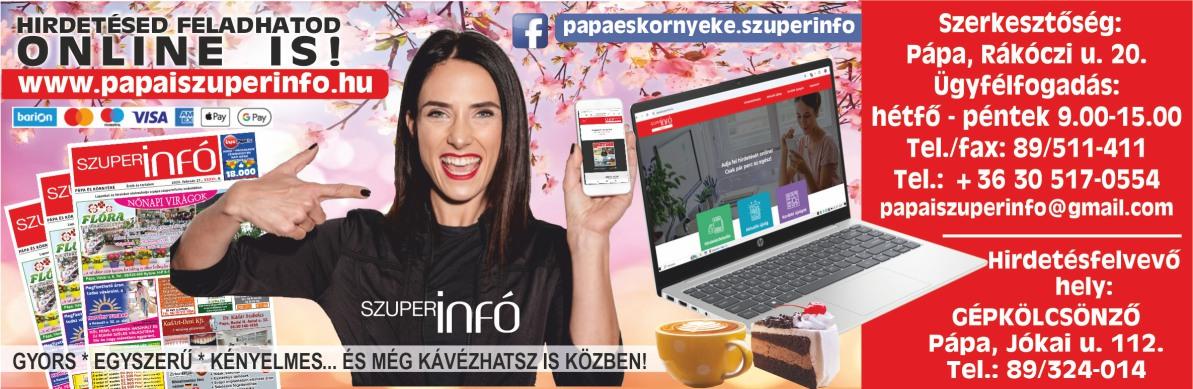 Lapunkat és híreinket elolvashatja a www.papaiszuperinfo.hu weboldalon.