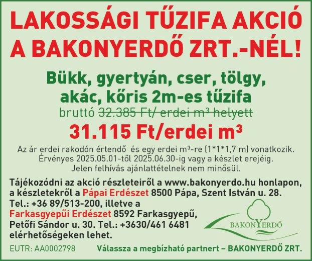 Bakonyjákó határában 15 ha 80 éves vegyes erdő eladó. Irányár: 55 M Ft. Tel.: +36/704545255