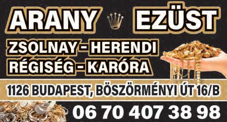 Továbbá vásárolunk mindenféle aranytárgyat, befektetési aranyat, fogaranyat, brillt, zsebórát, karórát, aranyérmét stb., valamint ezüsttálcát, ezüst ékszereket, mindent ami ezüst, Herendi, Zsolnay porcelánt, festményeket és mindenféle hagyatékot!