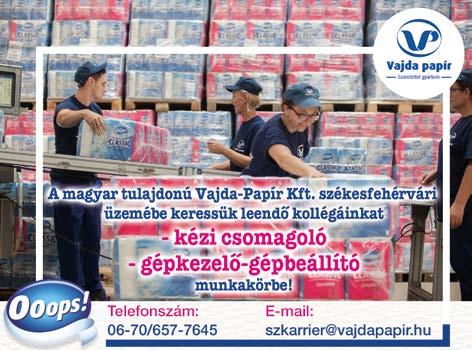 2023.július 21. Székesfehérvár és körzete Szuperinfó 8 Tác, Ady Endre u. 30. www.albatuzifa.hu 06-20/503-0022 06-20/4444-947 EUTR azonosító: AA5829543 SZÁRAZ KEMÉNY TŰZIFA kiszállítássaléshelyszínikiszolgálássalis H-P: 8-16-IG ALBA TŰZIFA KFT. 1081498 EUTR. azonosítószám: AA5834763 Szfvár, volt Vörösmarty tsz területén INGYENES SZÁLLÍTÁS TŰZIFA KERESKEDÉS Brennholz 2011 Kft. 06-20/576-8530 06-20/576-8666 cser-tölgy-bükk-akác MÉRLEGELÉS • MINŐSÉG 1053059 Jelentkezés: Küldd önéletrajzod a jelentkezz@arconic.com e-mail címre vagy hívd a 06 30 098 1423 telefonszámot. 485.000 Ft + műszakpótlék + juttatási csomag éves szinten akár 1.000.000 Ft Bér: 415.000Ft + műszakpótlék + juttatási csomag éves szinten akár 1.000.000 Ft időtartam: 2 hónap Bér: 415.000Ft +25.000Ft megbízási díj + műszakpótlék + juttatási csomag éves szinten akár 1.000.000 Ft időtartam: 4 hónap Bér: 415.000Ft +70.000Ft megbízási díj + műszakpótlék + juttatási csomag éves szinten akár 1.000.000 Ft időtartam: 6 hónap