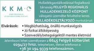 • Felgyőn (Kettőshalom) 6,71 ha szántó (0287/8 hrsz), 3,43 ha erdő (2024-es telepítésű nyárfás, 0287/31 hrsz) és 0,4 ha erdő (sarj akác, 0287/7 hrsz) eladó. 30/967-8717.