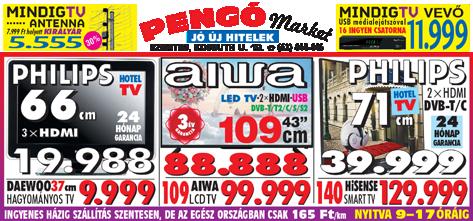 1 875 000 Ft, önrész: 375 000 Ft) a havi törlesztôrészlet 150 000 Ft, referencia THM: 0,00%, futamidô: 10 hónap, hitelkamat (fix): évi 0,00%, teljes visszafizetendô összeg: 1 500 000 Ft, a hitel teljes díja (kamat): 0 Ft (a hitel teljes díjában foglalt díj: 0 Ft; jutalék: 0 Ft; költség: 0 Ft; adó: 0 Ft). Üzleteinkben csak háztartási mennyiséget szolgálunk ki. A szórólapban megjelent egyes termékek csak rendelésre kaphatóak, részletekről érdekődjön az üzletben. Szórólapos áraink 2023. augusztus 3-tól 2023. augusztus 16-ig, vagy a készlet erejéig érvényesek és forintban értendőek, az áfát tartalmazzák. A hirdetett TV készülékek alkalmasak a magyarországi földfelszíni, szabad hozzáférésű digitális televíziós műsorszórás vételére. A szórólapban megjelenő árak 1 db termék megvásárlása esetén érvényesek. A szórólapban szereplő képek csak illusztrációk, szín- és típuseltérés előfordulhat. A nyomdai hibákért felelősséget nem vállalunk!
