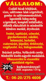 Tetőmosást, tetőjavítást, homlokzatszigetelést, állványozást, fürdőszobák teljes körű felújítását, burkolást, vízvezeték-szerelést, kőművesmunkákat vállalok. 06(30)432-6081