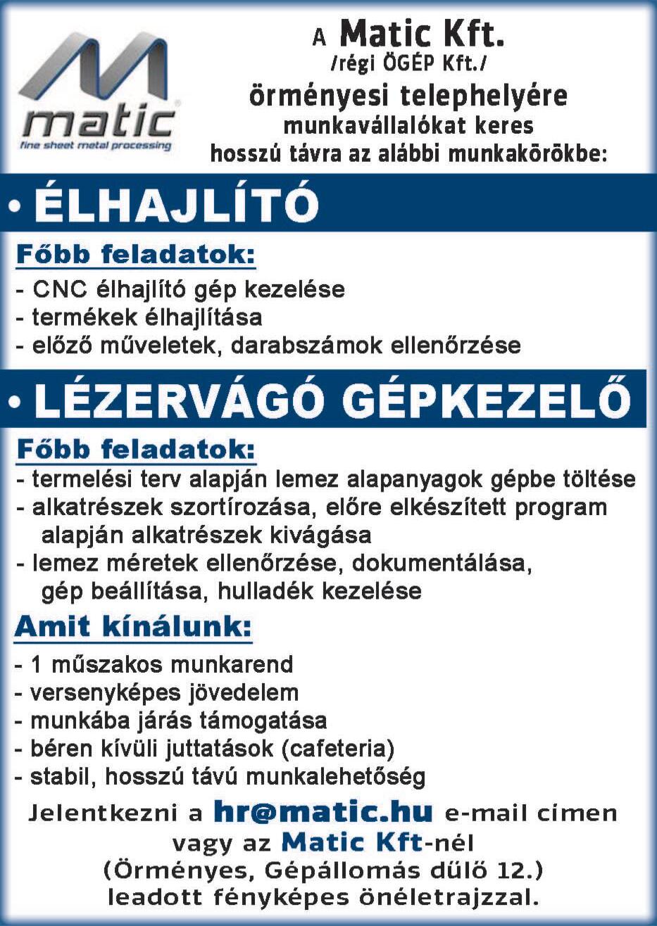 OSZTRÁK HATÁR közeli céghez karbantartót keresünk német nyelvtudással, elektronikai és mechanikai szaktudással. Jó Meló Kft. Érdeklődni:+3630/418-9041.