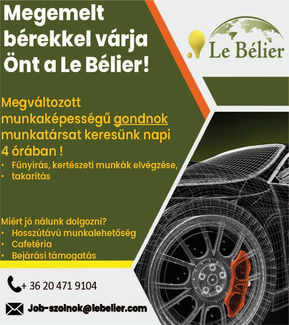 SZAKÁCSOK FIGYELEM! Gyakorlattal rendelkező,munkájára,környezetére igényes munkatársunkat keressük Abonyban üzemelő étterembe. Aki szeretne egy családias hangulatú környezetben, klimatizált konyhánkon dolgozni, versenyképes fizetésért, itt a lehetőség jelentkezz! 0620/941-3030GerosaBt FŰKASZÁS munkakörbe keresünk munkavállalót. Fizetés bruttó 300.000 Ft. Forfex Project Kft. T: 06 707030116.