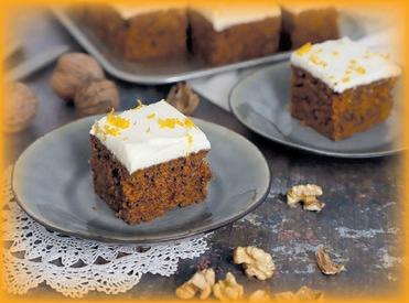 A mascarponét a vajjal kikeverjük. Hozzádagoljuk a porcukrot és a vaníliaaromát, ezekkel is alaposan elvegyítjük, majd a kihűlt süti tetejére kenjük, és hűtőbe tesszük legalább egy órára. Ezután felszeleteljük és tálaljuk. Reszelt narancshéjjal díszíthetjük.