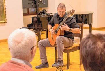 A várpalotai zeneiskola hagyományos Zeneszerda programja ezúttal a romantika korát mutatta be. A tanárok és növendékek koncertjén Schubert, Schumann, Brahms és Csajkovszkij művei csendültek fel a vár Thury-termében. Képünkön Mátrai Balázs gitározik. (Cikkünk a 6. oldalon) FOTÓ: RUMPLER IMRE