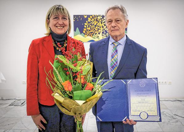 Campanari-Talabér Márta polgármester és Sersztnyev László pedagógus az aranydiploma átvétele után a várpalotai inkubátorházban FOTÓ: SZABÓ PÉTER DÁNIEL