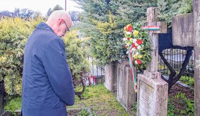 Katona Csaba alpolgármester helyez el koszorút gróf Zichy Béla 1848-as nemzetőr síremlékénél FOTÓ: RUMPLER IMRE