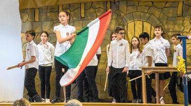A Nepomuki Szent János iskola diákjai műsorukban felidézték az 1848. március 15-én történt eseményeket, elszavalták a Nemzeti dalt, ami az 1848/49-es forradalom és szabadságharc máig ható üzenete, a magyar hazafias költészet kiemelkedő alkotása. Elmondták a 12 pontot, a forradalom követeléseinek összefoglalását.